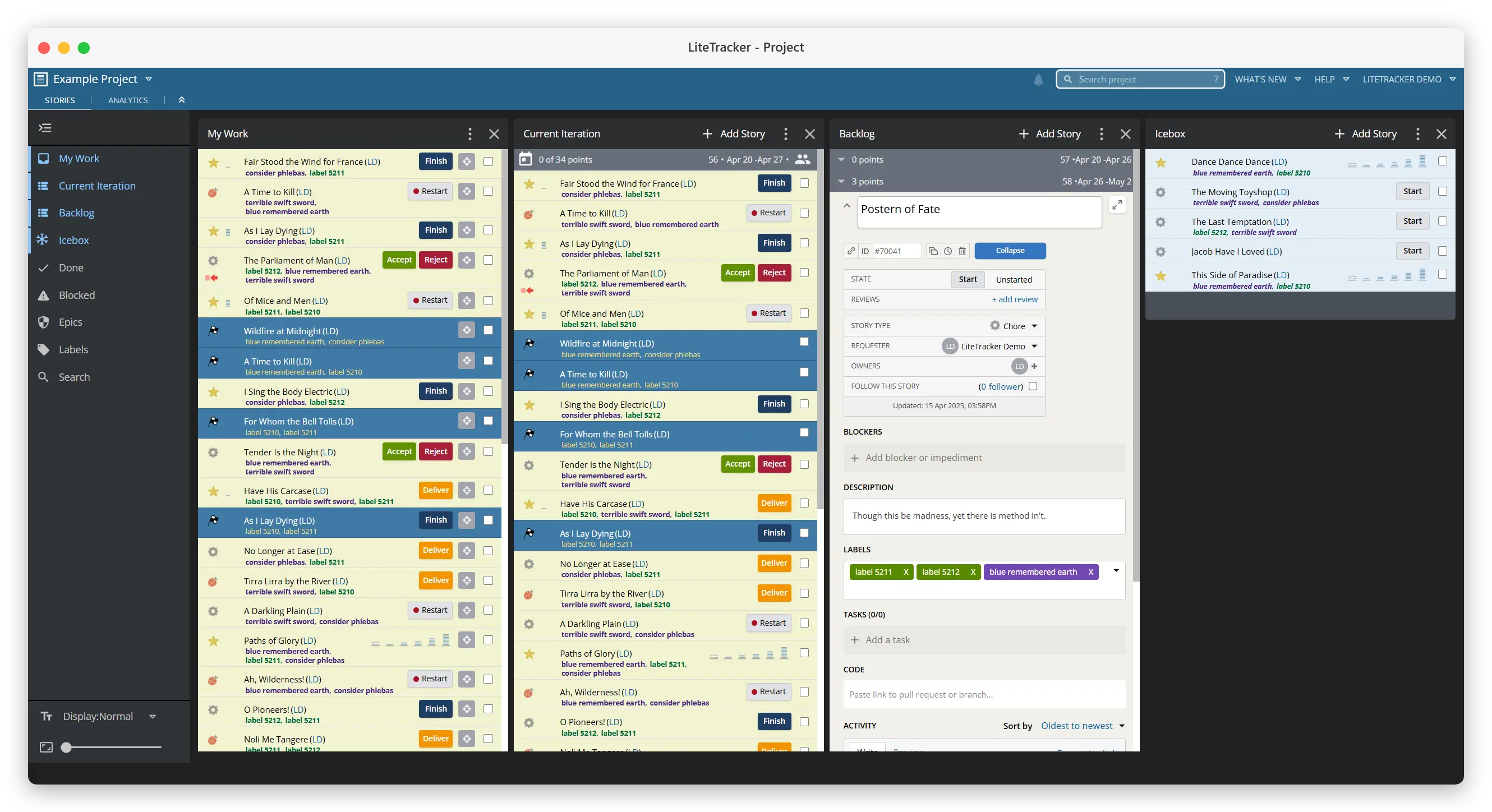 Pivotal Tracker set the standard for agile project management with its elegant simplicity and powerful workflow. From automatic velocity calculation to the iconic story states, it helped thousands of teams ship better software. LiteTracker preserves everything that made Pivotal Tracker special—story points, iteration planning, epics, and the accept/reject workflow—while adding modern improvements teams have been asking for.