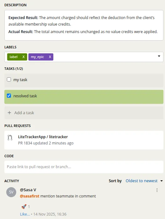 Epics let you organize related stories under a single theme or feature. Track progress across multiple stories and see completion at a glance.